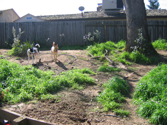 I have great dreams for our backyard. It’s a odd layout because our house is built into a hill, but it has great potential despite it’s design. The hill part you see in the picture poses some interesting challenges. First, it has a great big, gorgeous oak tree smack dab in the middle. Any sort of ground cover I get needs to require very little water or else I risk killing the oak. Second, without ground cover it’s a scene from the Grapes of Wrath, with piles of dust accumulating everywhere. Third, because of the great big, georgous oak tree, the area is covered with a mixture of full light and shade (dappled light, as I like to call it) which makes my head want to explode when trying to find plants. And fourth, we’re on a budget!