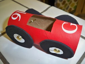 Potential craft supplies: In my previous job, I worked with kids and regularly had to come up with craft projects. For the past couple of years I have collected egg cartons, cardboard from boxes, tin cans and about a billion toilet paper tubes (a slight exaggeration: it feels like a billion). I get absolutely giddy when I take an item that is considered trash and turn it into a teaching tool or a cool craft. This race car on the right is made from a toilet paper tube and you can link to the instructions if you’re interested. Not only does this help to reduce container waste, but it’s wonderful for the budget. Pinterest has links to tons of ideas and I created a board on Pinterest dedicated to Repurposing and Recycling.