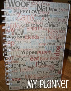 Of course it’s covered with dog-themed scrapbook paper! It’s 5 1/2 X 8 1/2, spiral bound and fits nicely into my purse.