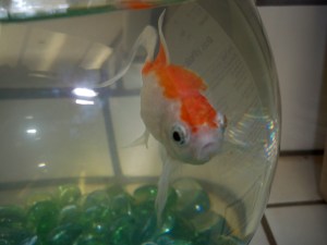So, we come to the constipated goldfish. I noticed last night that Faith, my goldfish, was looking very bloated. So I googled (I love when a word is both a noun and a verb) “my goldfish is bloated” and received many entries for this problem. She either has something called “bloat” or she needs to poop. I checked several of the sources and they all gave the same remedies for both conditions. Epsom salt bath for the bloat and frozen peas for the constipation. Since I don’t know which it is, I’m doing both. Now I’m fairly certain that I would never have searched for remedies for a constipated goldfish without needing a reason, but now I have all this extra knowledge about goldfish. Seems silly, but I think that’s cool. With the click of your mouse your world is opened up to an infinite amount of knowledge. Pretty neat.