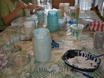 Changing my methods | As you know I’m a collector :-). I collect ideas, have for years. Any magazine I would look through ended up as a shadow of its former self because of all the articles/pictures/craft ideas I tore from its binding. Or while reading my crafty blogs, I would find ideas and print them off on my printer. I would take these ideas and glue them into 5-subject college-ruled notebooks for future reference. And each notebook held a single topic like ‘home ideas’, ‘crafts’, ‘gardens’, etc. I have a couple of shelves in my craft room devoted to these notebooks. About a decade ago, I switched to a plastic sheet protector/3-ring binder system and they join my notebooks on the shelf. Then about a year ago I discovered Pinterest. If you are aware of Pinterest then I don’t have to say much more, but I will. I LOVE PINTEREST. It’s my notebooks; just much neater and requiring less space/paper/ink. Now when I find an idea, I pin it to one of my boards and wait for the day when I need to retrieve it. With the billions of ideas floating around the webosphere these days and the ability to corral those ideas into the organizational marvel that is Pinterest… well I’ve changed my method of saving ideas! Here are pictures of projects from some Pinterest parties I’ve been to. ![]()