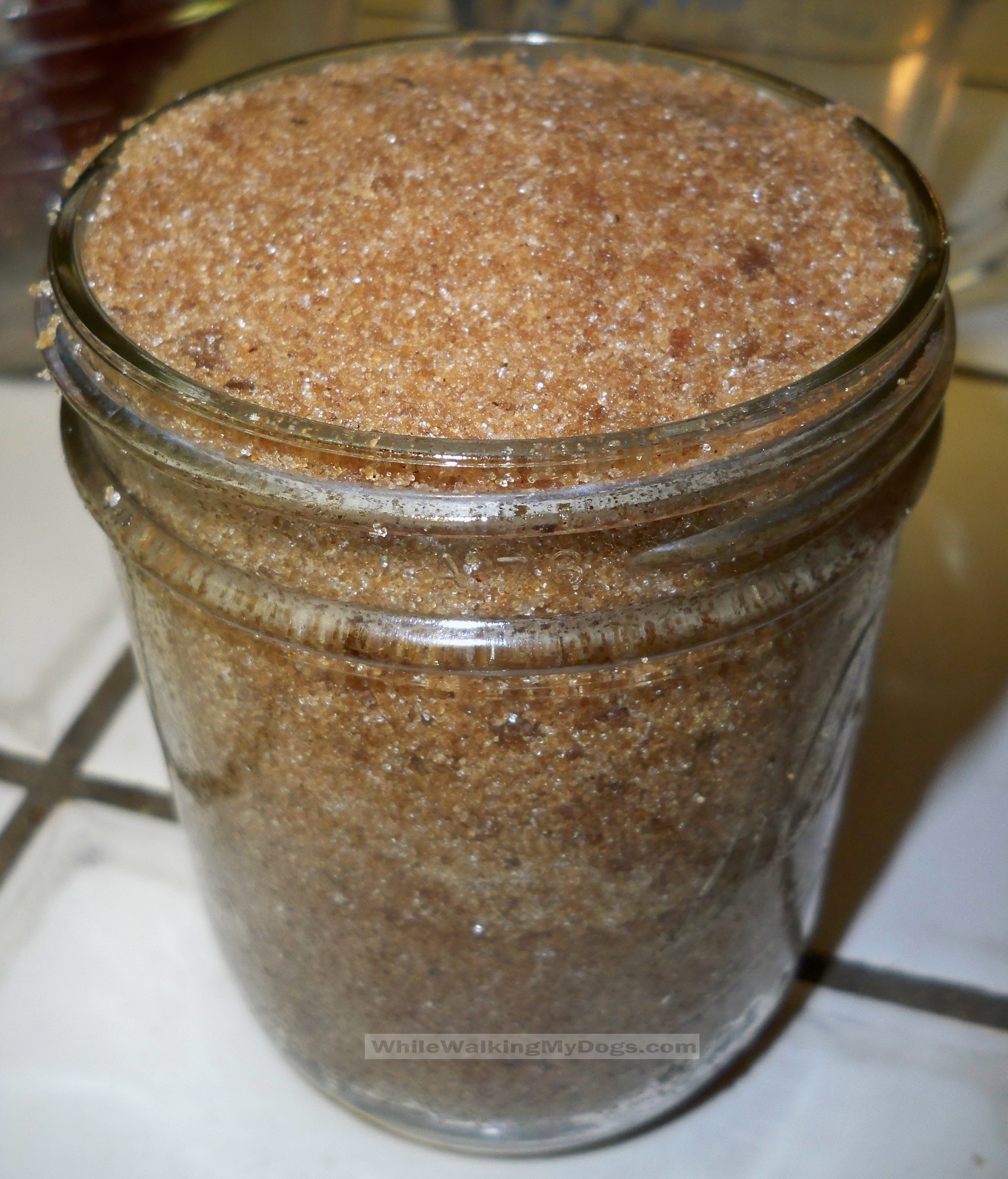 This scrub was really straight forward to make. Just mix all the dry ingredients and then add your oil. The recipe suggested either almond oil or coconut oil. I chose coconut because that’s what I had. I had to add an extra step of melting the coconut oil in the microwave because it’s solid at room temperature. After it was melted I just incorporated it into the sugar and spices.