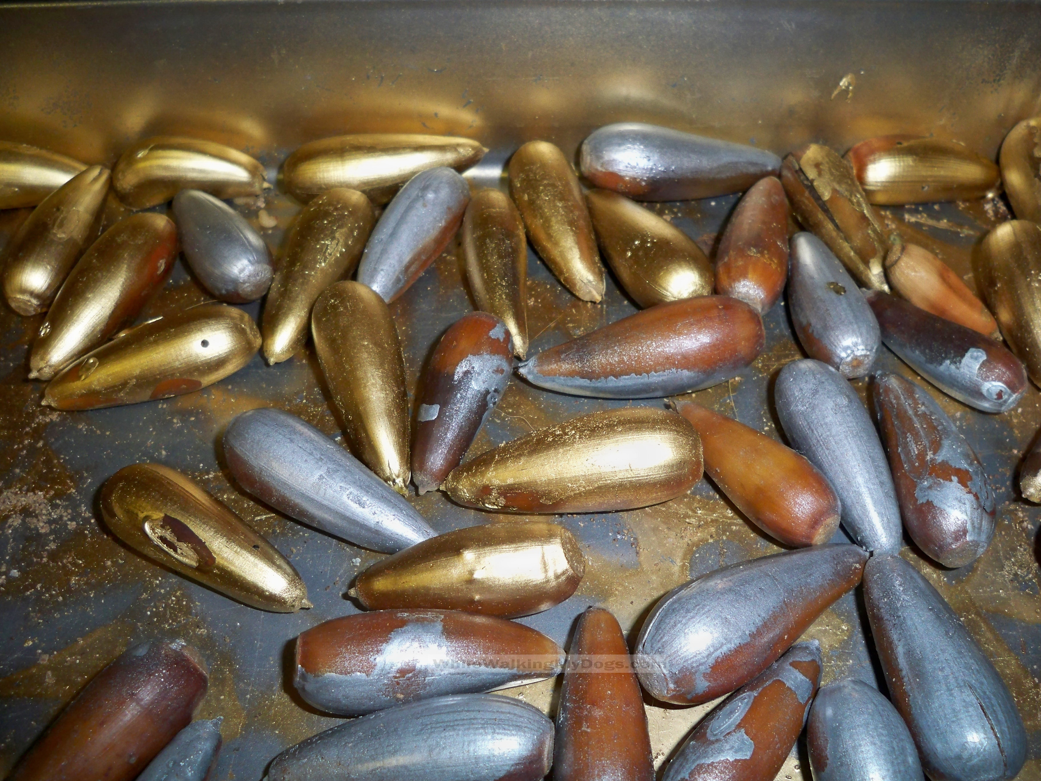 We have an oak tree in our backyard and this year it’s blessed us with a bumper crop of acorns. When I’m not prying them out of the mouths of curious doggies, I’m gathering the acorns up so they don’t take root and grace us with several hundred little oak trees.
