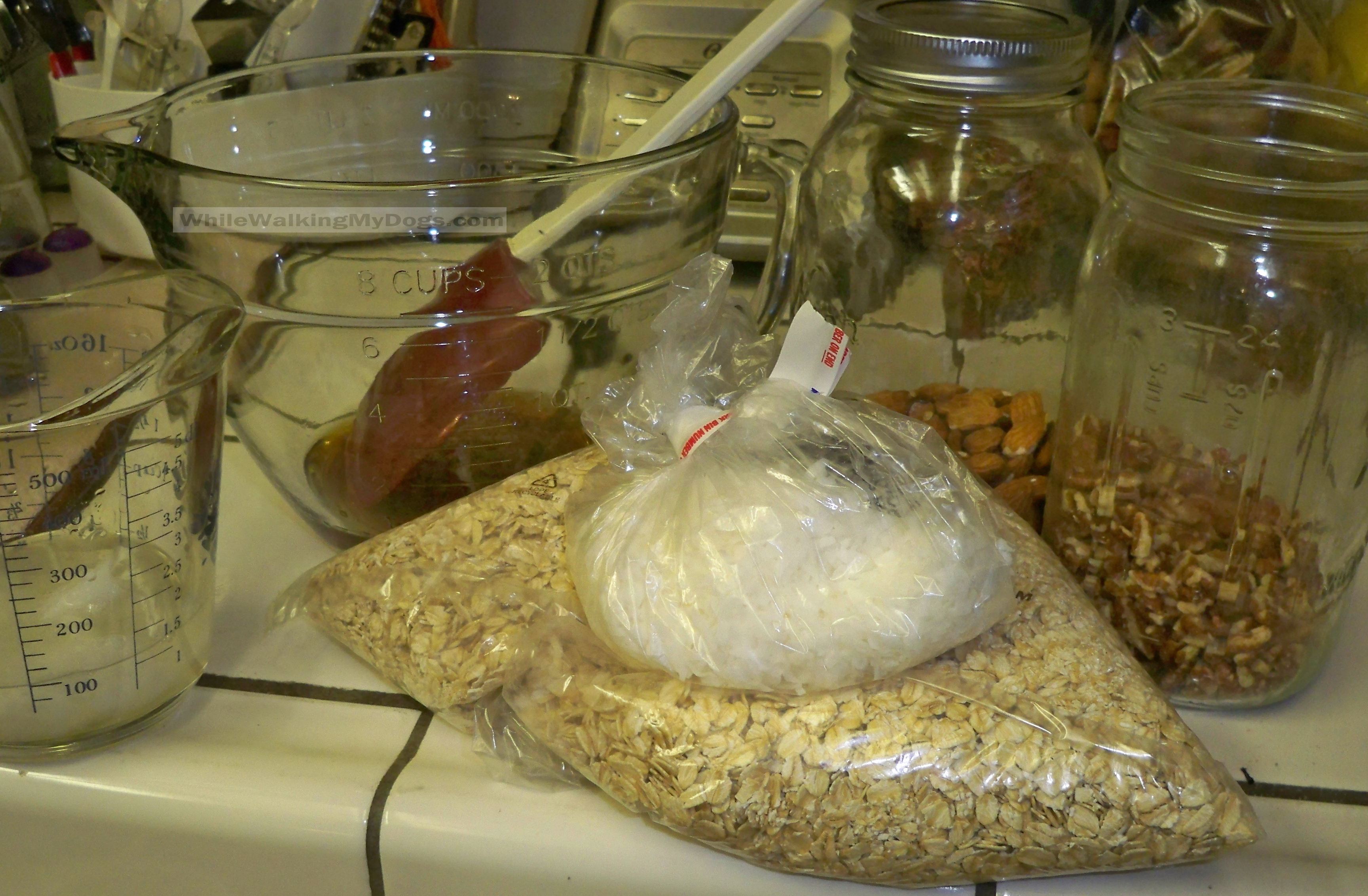 “Did you know that nuts aren’t good for dogs? That’s why mom “says” we can’t have any of the granola. Really I think it’s just because she wants all for herself.”