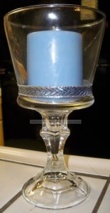 It was crazy easy to do. First I took a trip down to my local dollar store and bought a tapered candle holder and a bowl with straight sides. They had the mini-gold fish bowls, but I liked the one you see in the picture. The tutorial suggested glass or bead glue and I fished out my tube of E-6000 adhesive. This stuff will stick to anything! If you decide to use it make sure you’re in a ventilated area; it packs a punch.