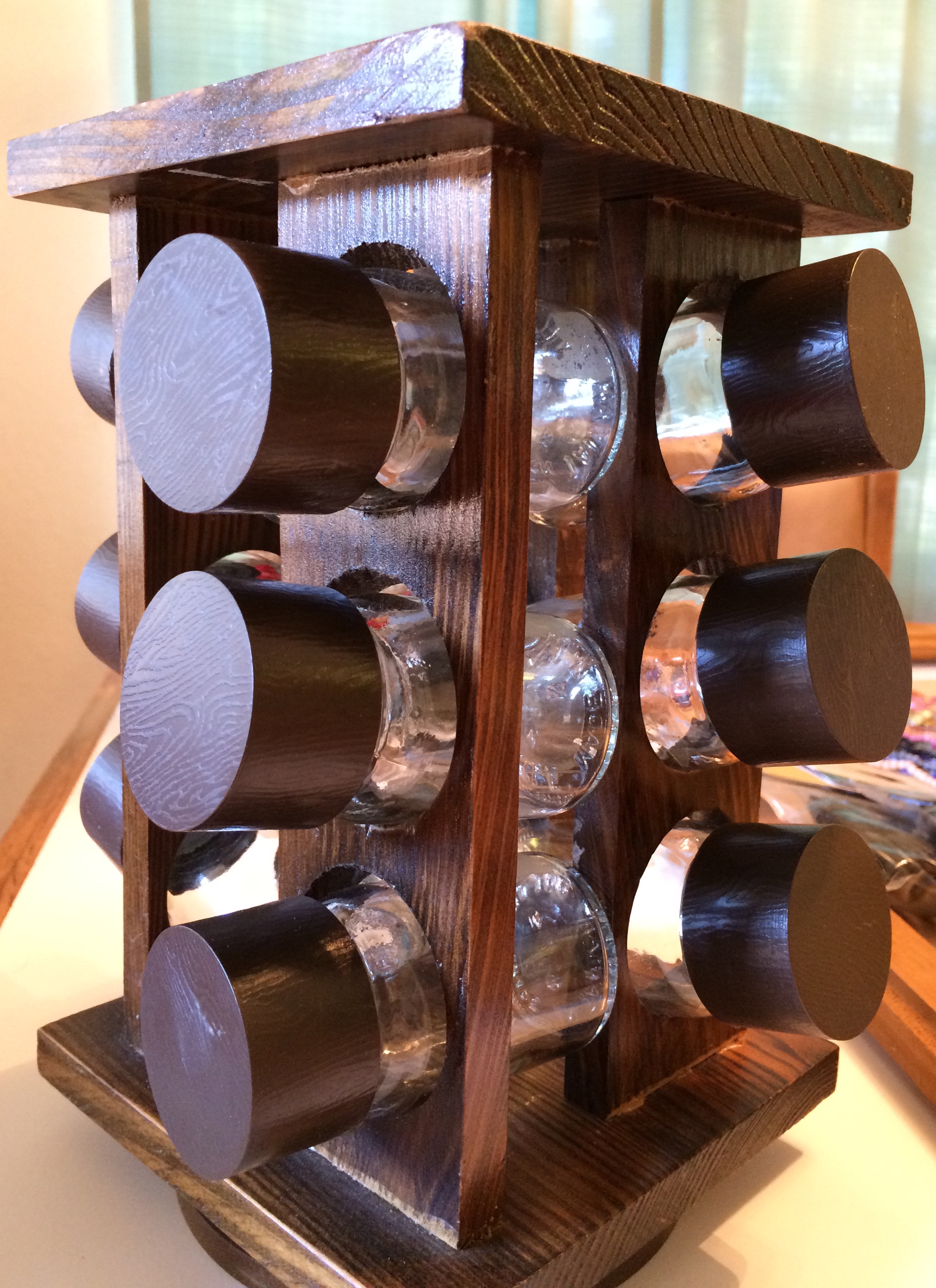 A fresh coat of paint and this carousel will be perfect for my craft supplies. Cost $1.
