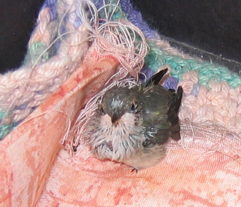 Today’s October Photo-a-day prompt is “crafty”. Now this is a word that makes my brain want to explode! There are so many pictures I wanted to take for this prompt, but I needed to whittle it down to one. I looked through my craft room and found a project bag from a couple of years ago with these cute chickens stuffed with rice. They’re called Chicky Boo Boo’s and you can put them in the freezer and when there’s a need for an ice pack (especially for children) you have a cute chicken ready to cool away the pain. I really loved the design, and had thought about making one in the shape of a dog and calling it a Puppy Boo Boo. When I do that I’ll post a picture. Seeing these guys made me think of birds which triggered the memory of the time I rescued a baby hummingbird.