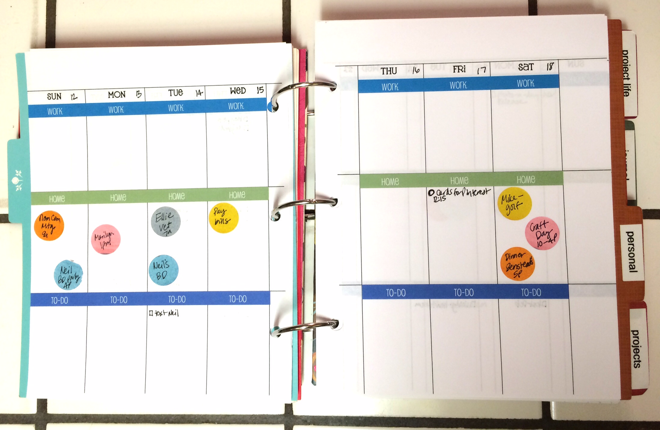 The changes I made to my planner were to the daily section.  I was just using a simple “to do” list system, but I found myself wanting to see the week at a glance.  While reading one of my paper crafting bloggers, Jennifer McGuire, I watched a video she posted explaining her organizing system.  She uses an Erin Condren Life Planner, but made some modifications to fit her needs.  It was what I was looking for!