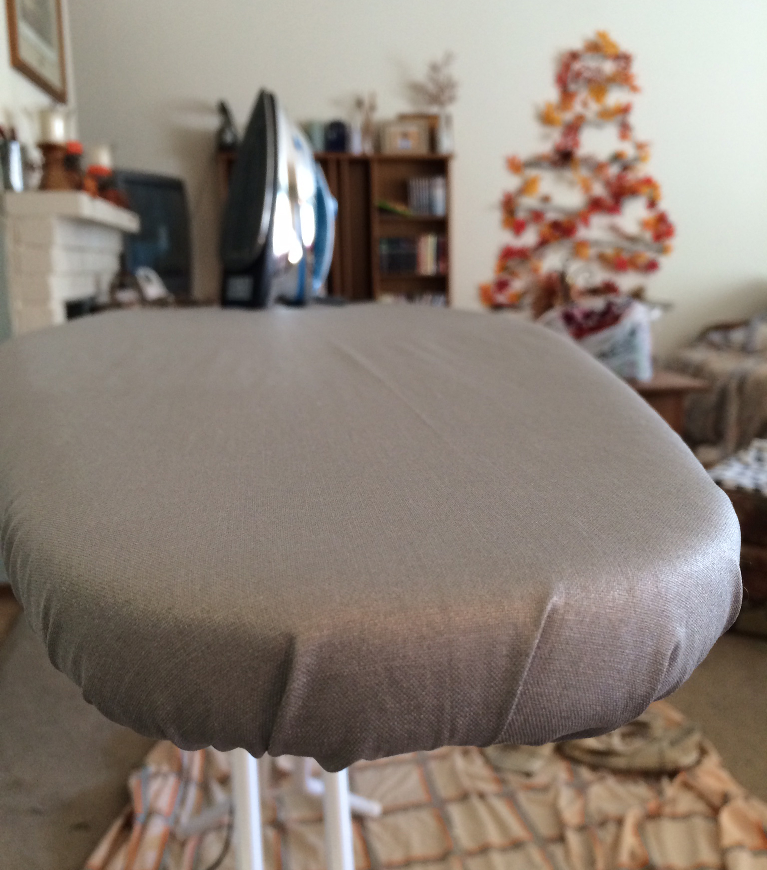 Joann’s was having a sale on utility fabric and they carry an ironing board cover material that has a unique aluminized coating that gives a smooth, resilient surface. I bought 2 yards plus some 1/4″ elastic and with my 20% coupon I was out the door for under $13. I also wanted to add a thicker padding surface under the cover and had quilting batting leftover from previous projects.