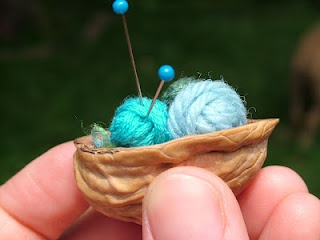 nook in the corner of the garden. I love doll houses and all things miniature, so it’s no surprise that I’m really taken with these gardens. Eek! It’s a yarn basket made from a walnut shell. —->