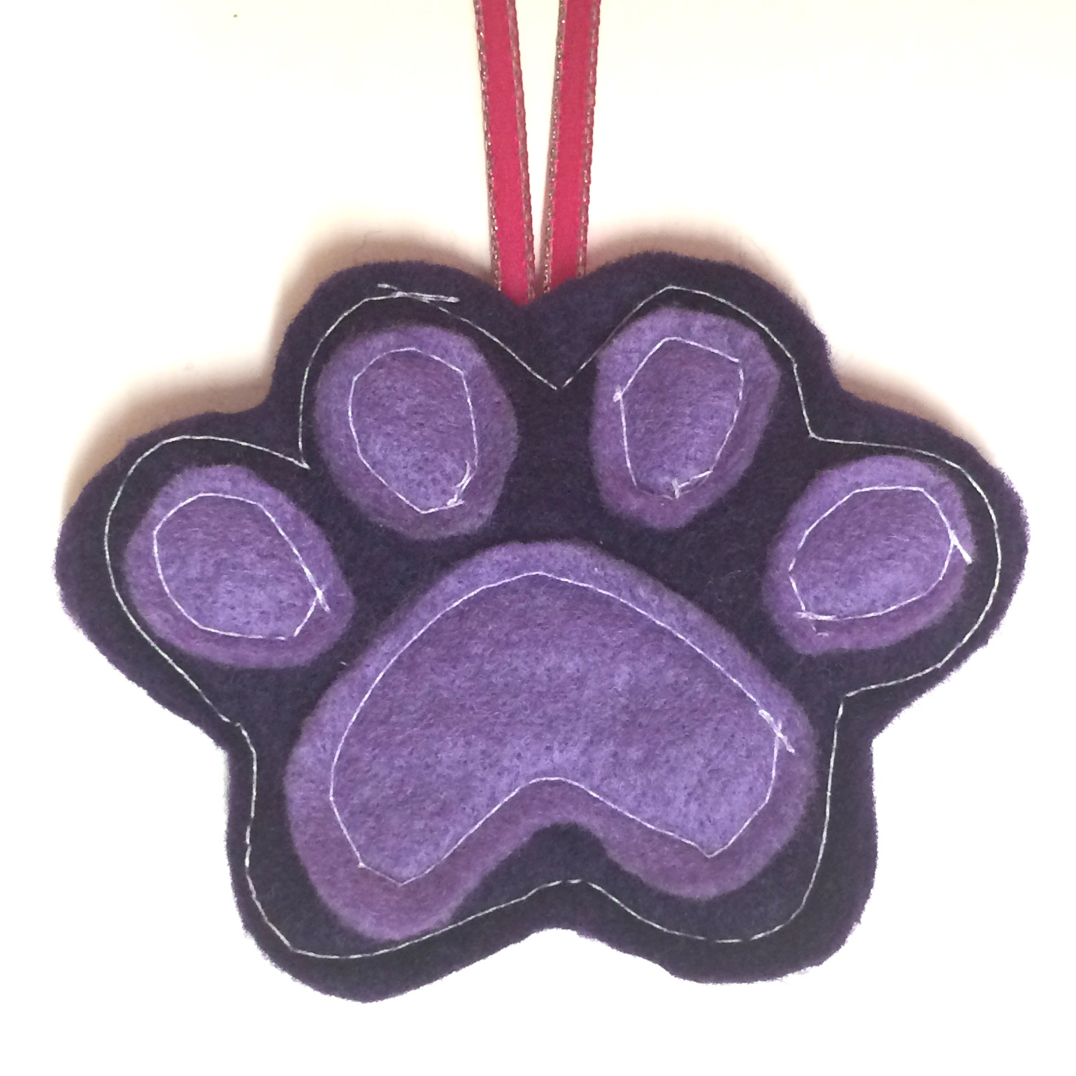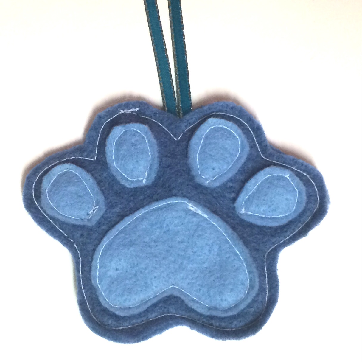 I used felt, ribbon and my sewing machine to stitch them together. I cut the 2 bases and the pads with coordinating felt, stitched the pads to one of the bases first, then sandwiched the ribbon between the two bases. I was going to stuff them, but they looked pretty good flat. I can imagine a whole bunch of these in bright colors all over a Christmas tree.