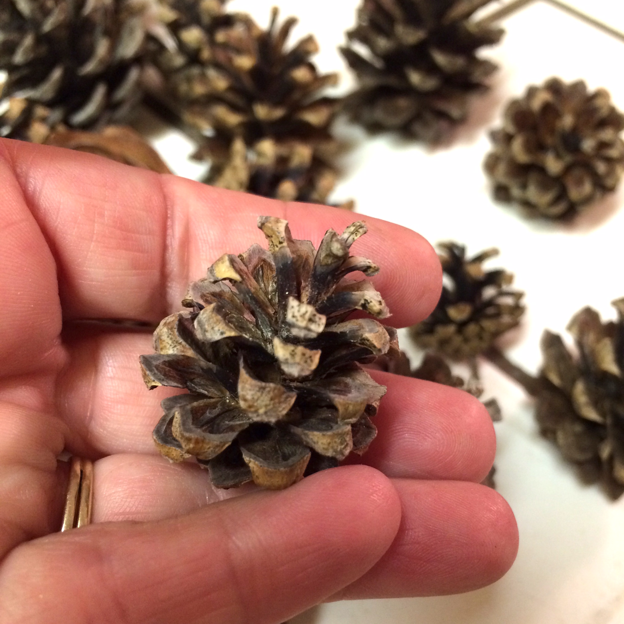 FYI… the little cones are Redwood cones. I have them here on my property if you want more – used a few on project with mom yesterday.