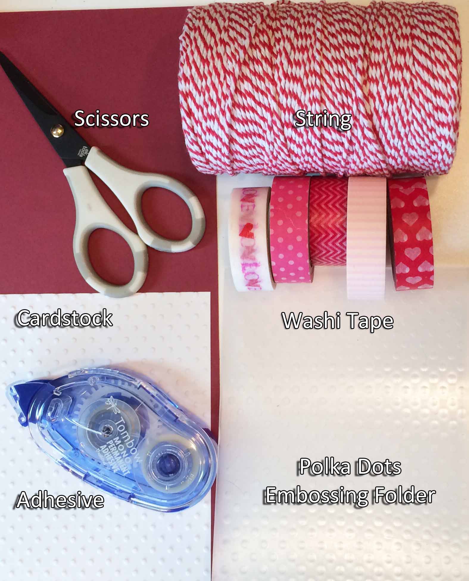 Card 17 Supply LayoutAs I mentioned in the first Valentine’s card that I made, I’ll be making a few of these during this series.