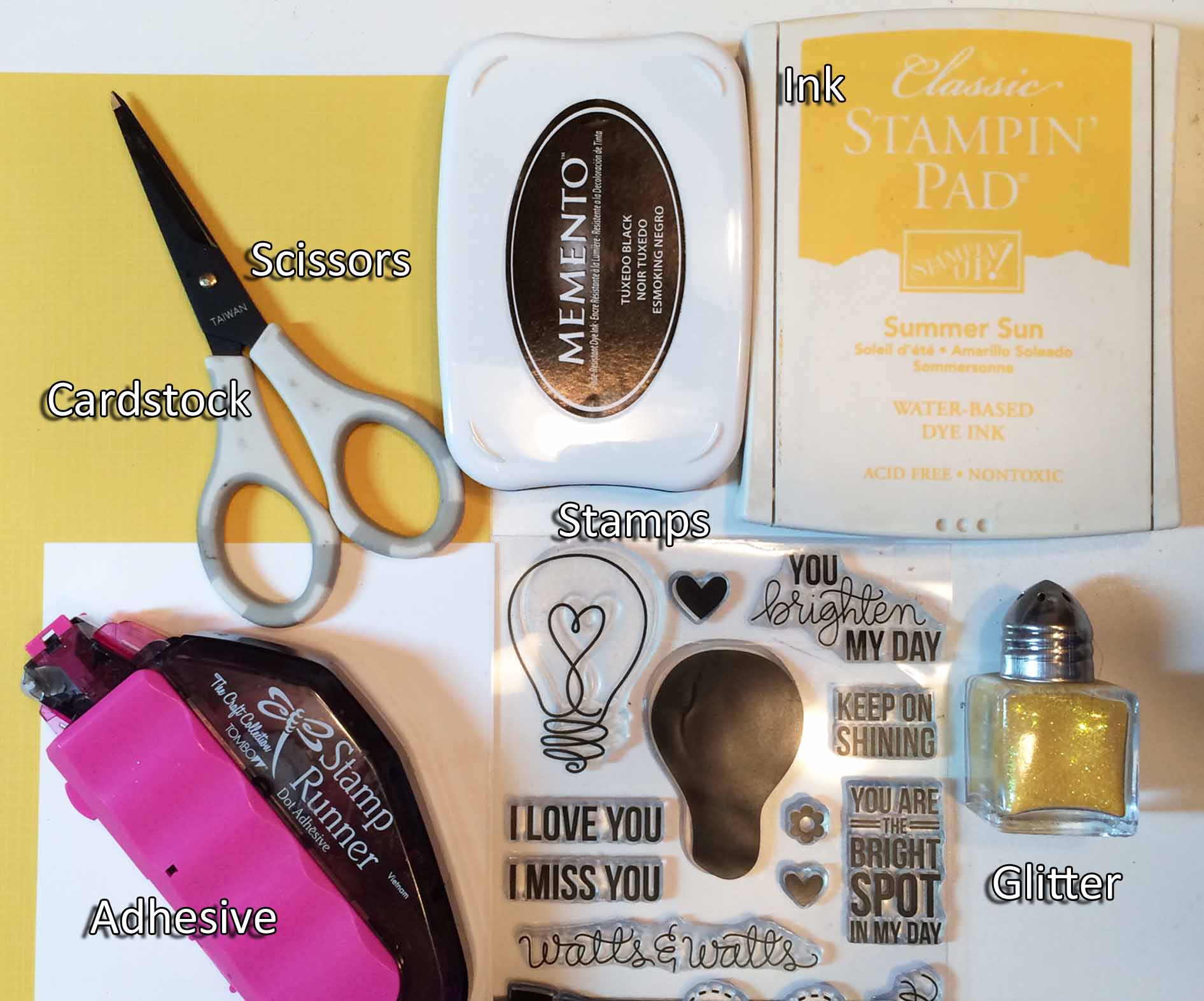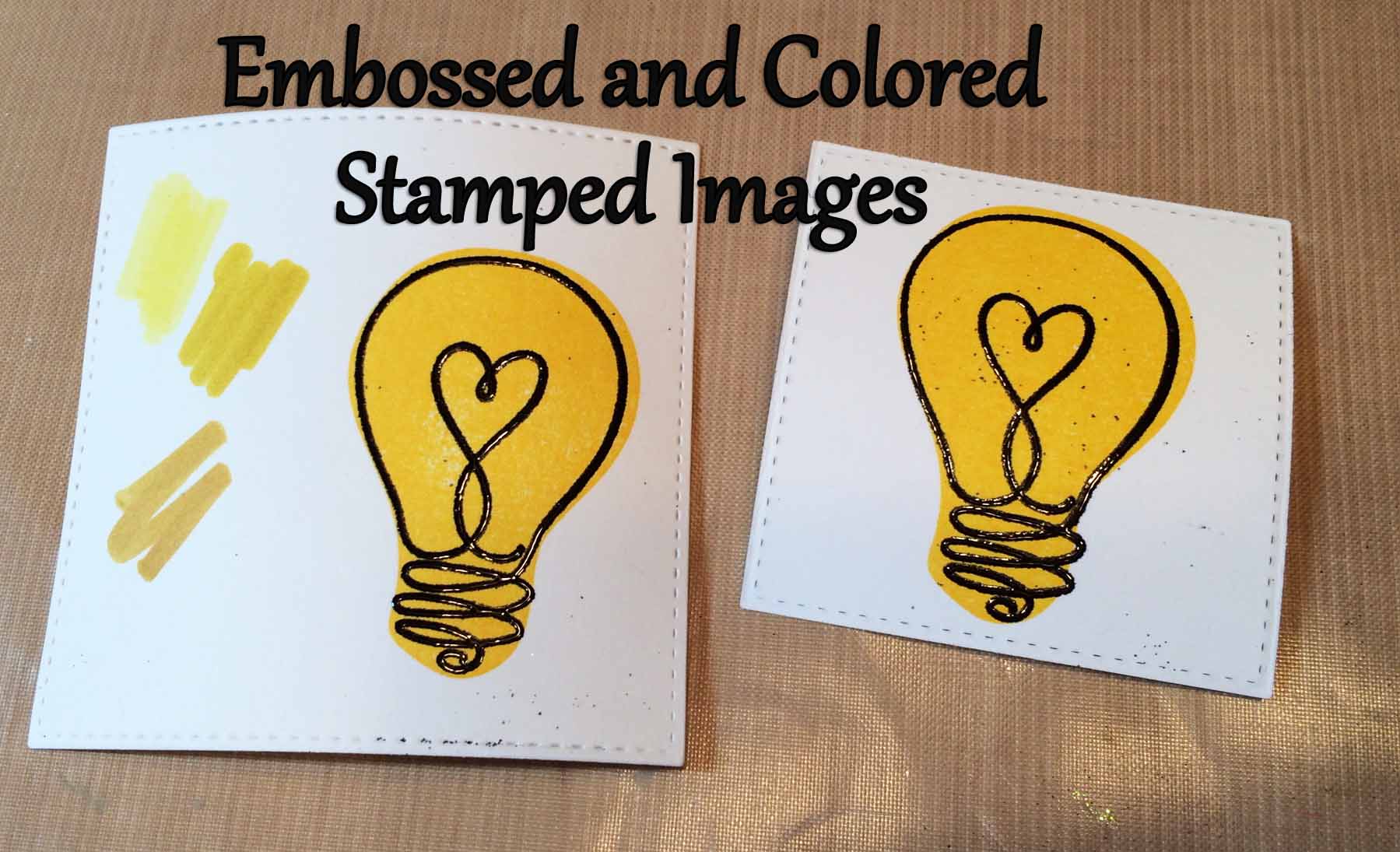 I stamped and embossed two images of a light bulb and cut them out. Each image is glued together so that the back of the panel is the same as the front.