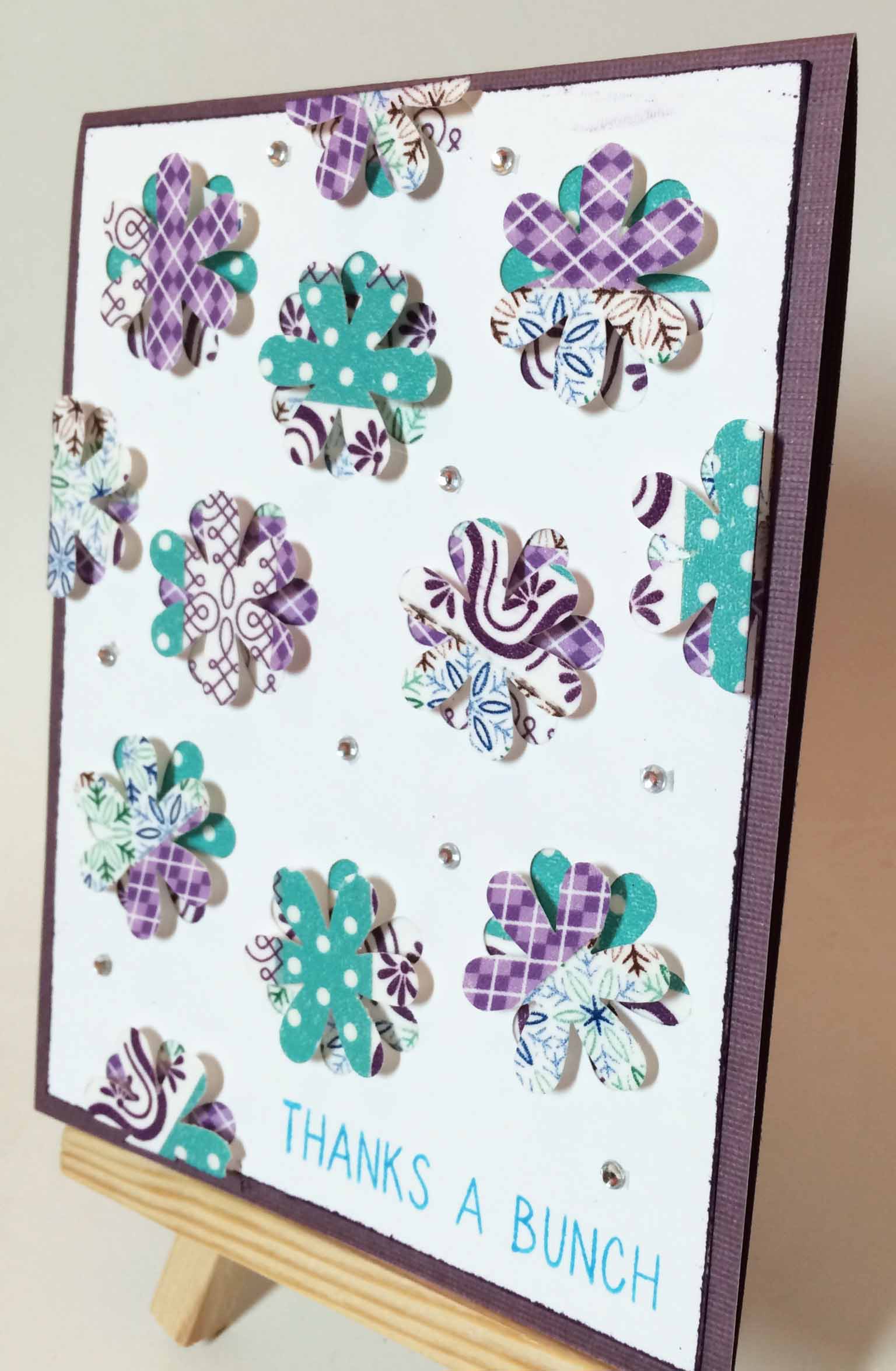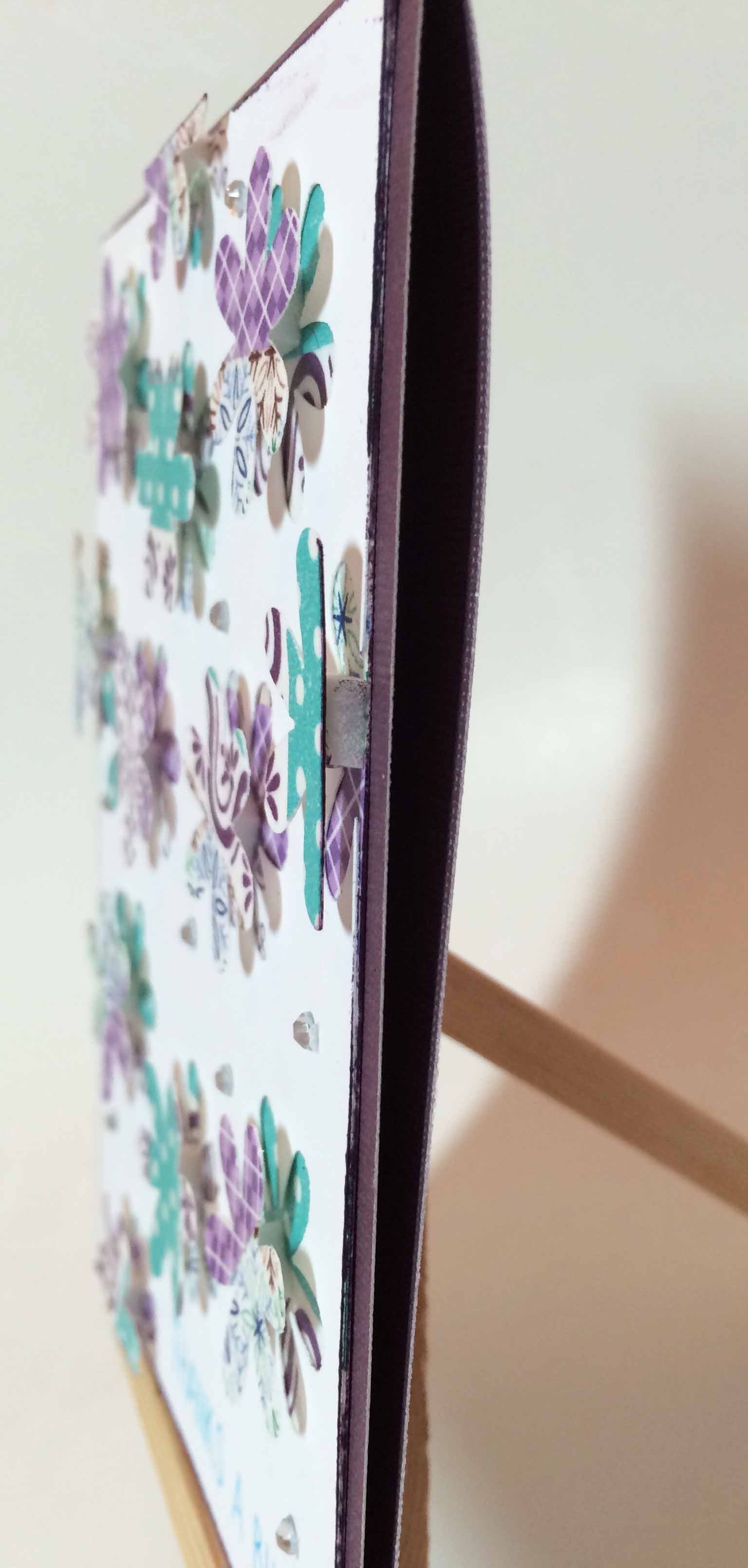 For this card I used plum textured cardstock (4 1/4″ X 11″) for my base and white cardstock for the front panel.
