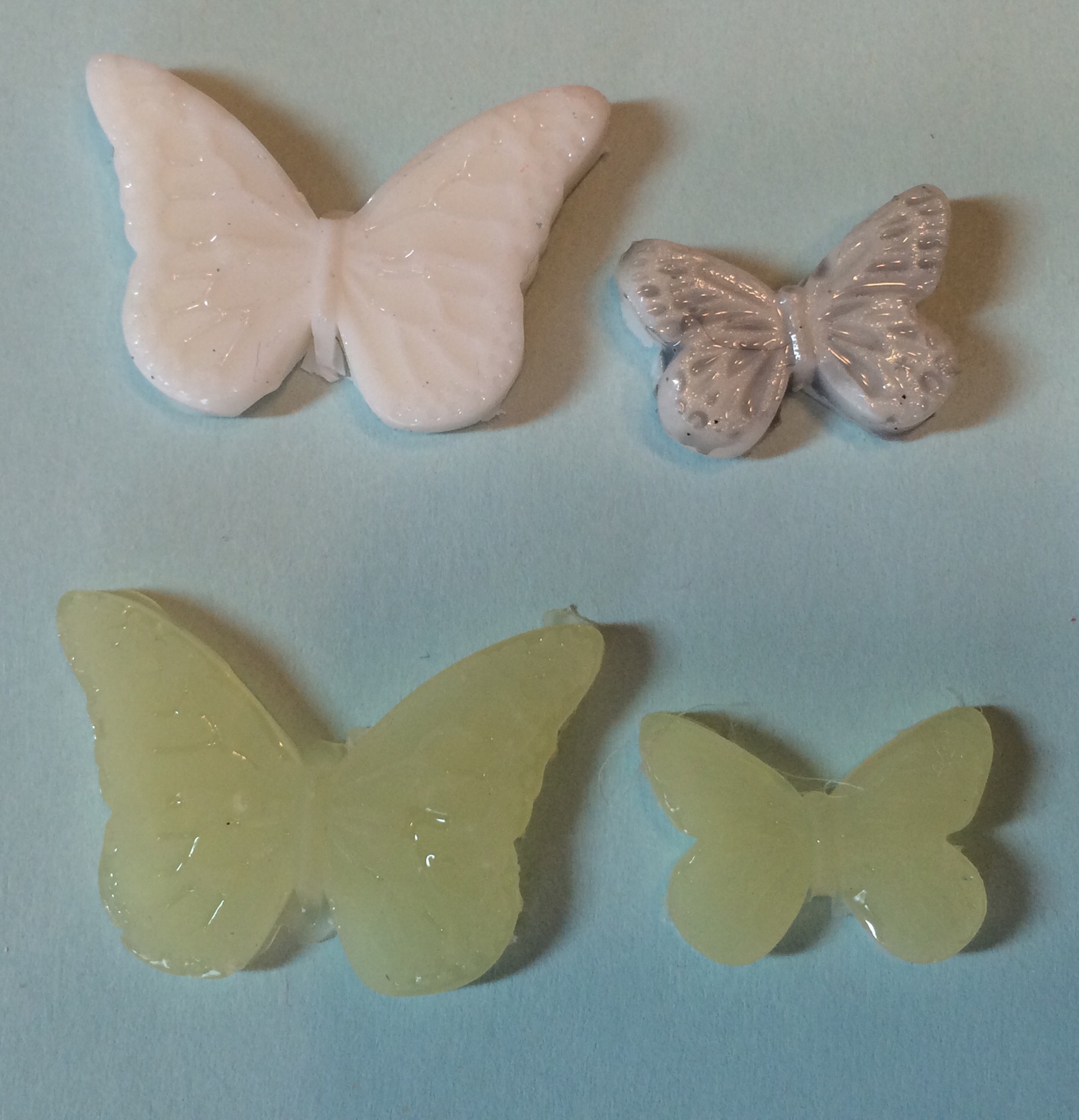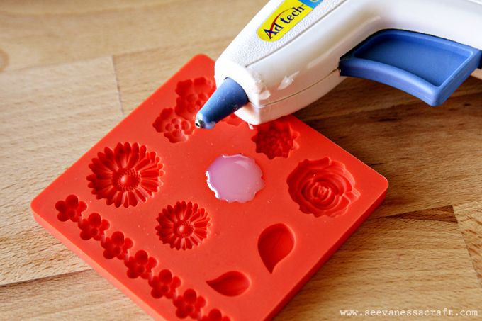 All you need is a high temp glue gun, the specially designed glue sticks and the molds. There are many choices of molds – the ones I have are flowers, butterflies, frames and ephemera.