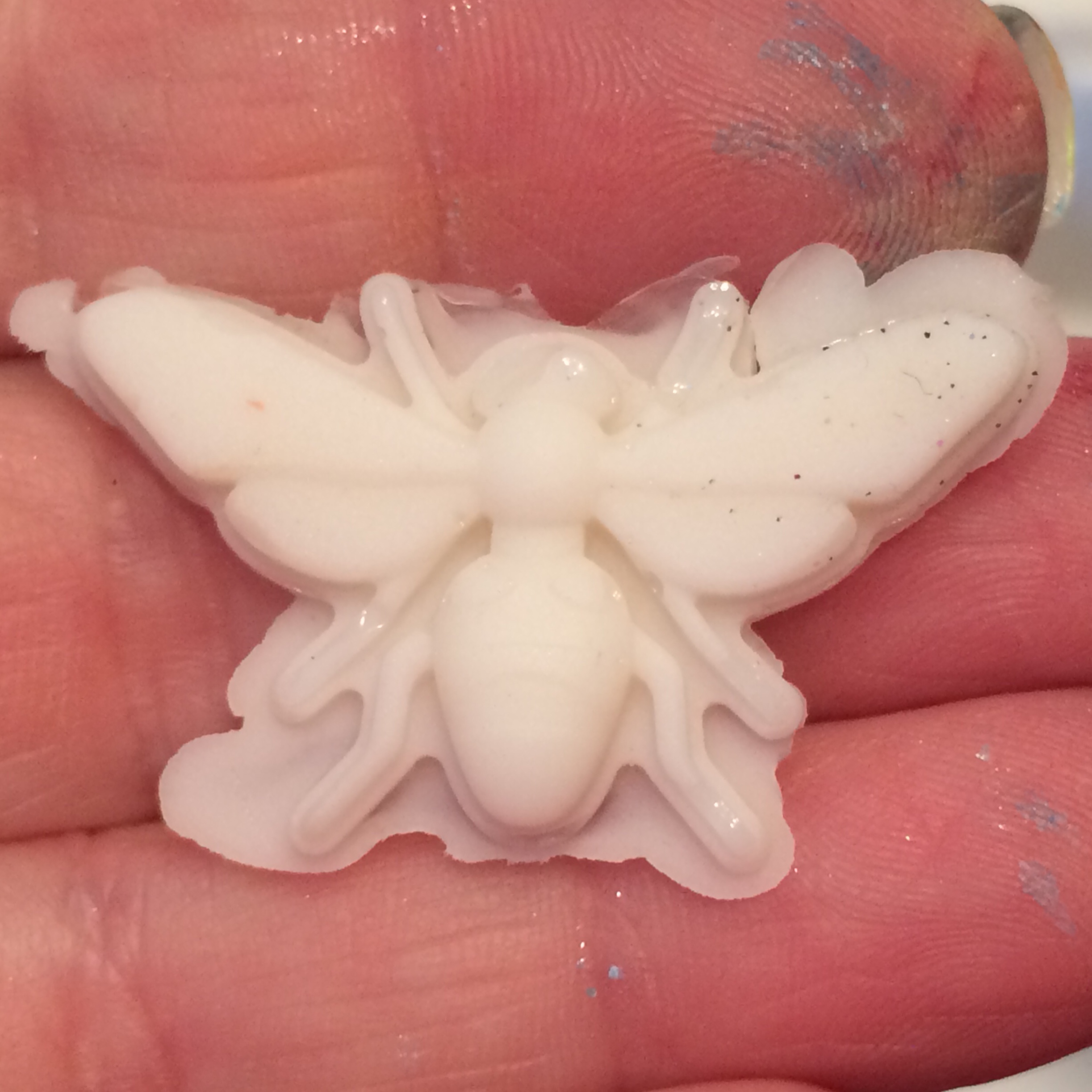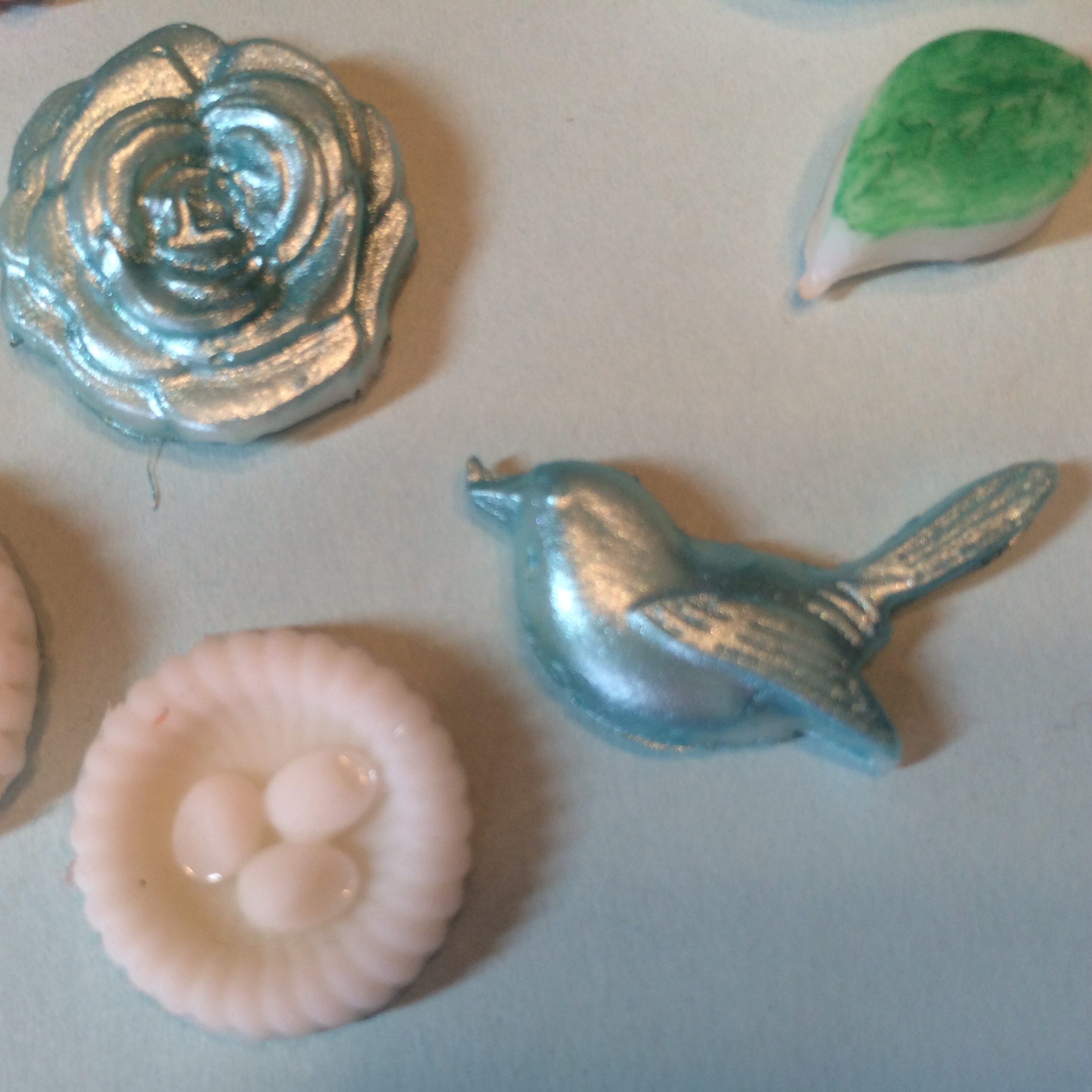 At first blush, this would seem incredibly simple and it was to a certain degree. I filled the molds with the melted stick and within minutes out popped the embellishment. That part worked out great.