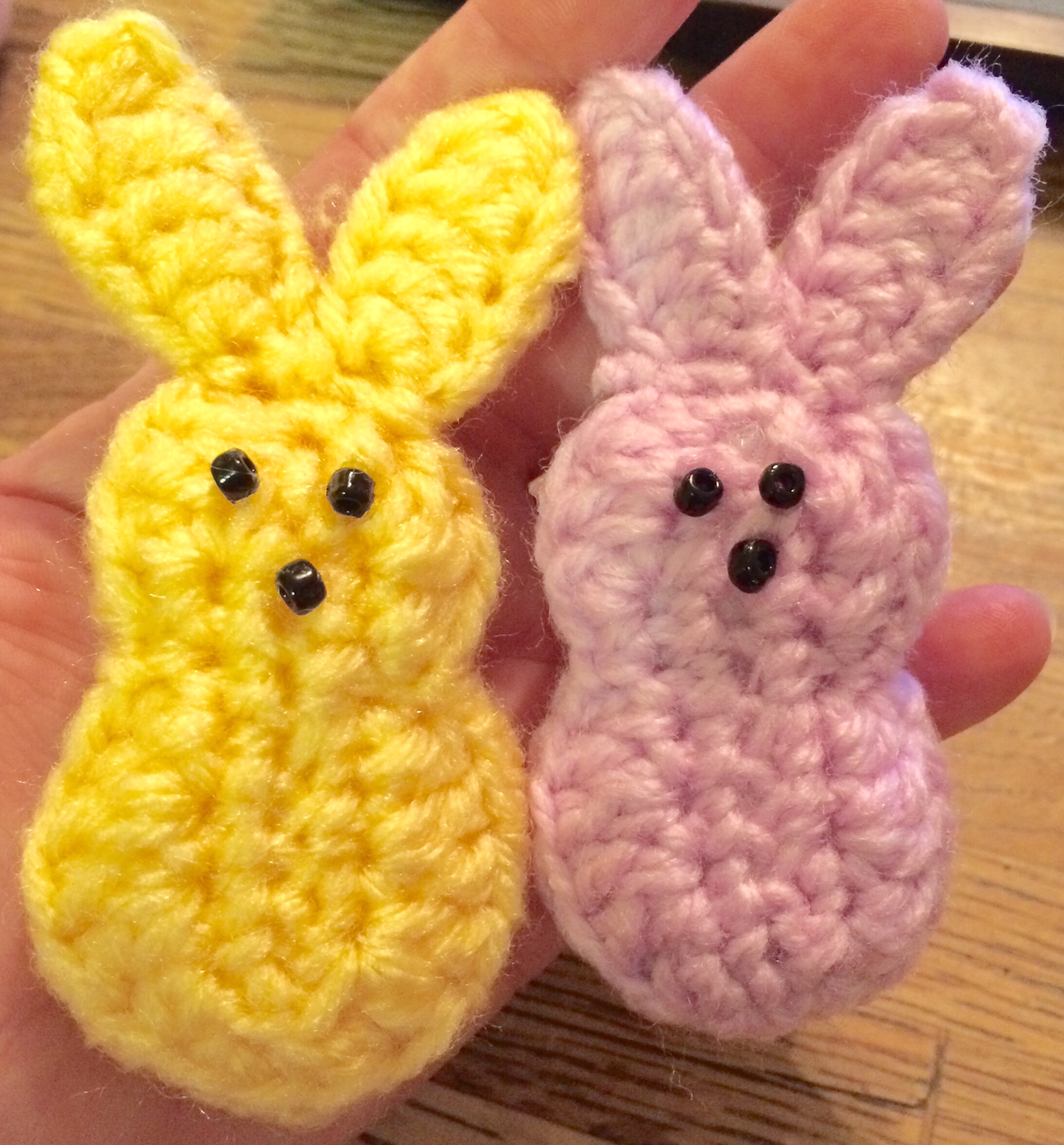 While the Peeps I made today don’t have near the calorie content of the original, they sure turned out cute. As I was making them, I was thinking about all the different colors of yarn I could use. A while back I dyed a batch of worsted weight yarn with Kool-aid and the vibrant colors would be perfect for this project.