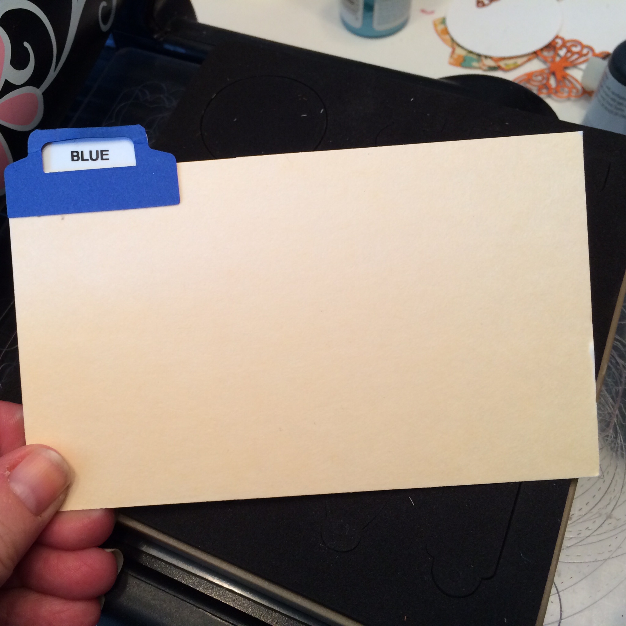 I pulled my index file drawer out of storage, the one I found at a garage sale, found my scrap paper bins and started to make my dividers.
