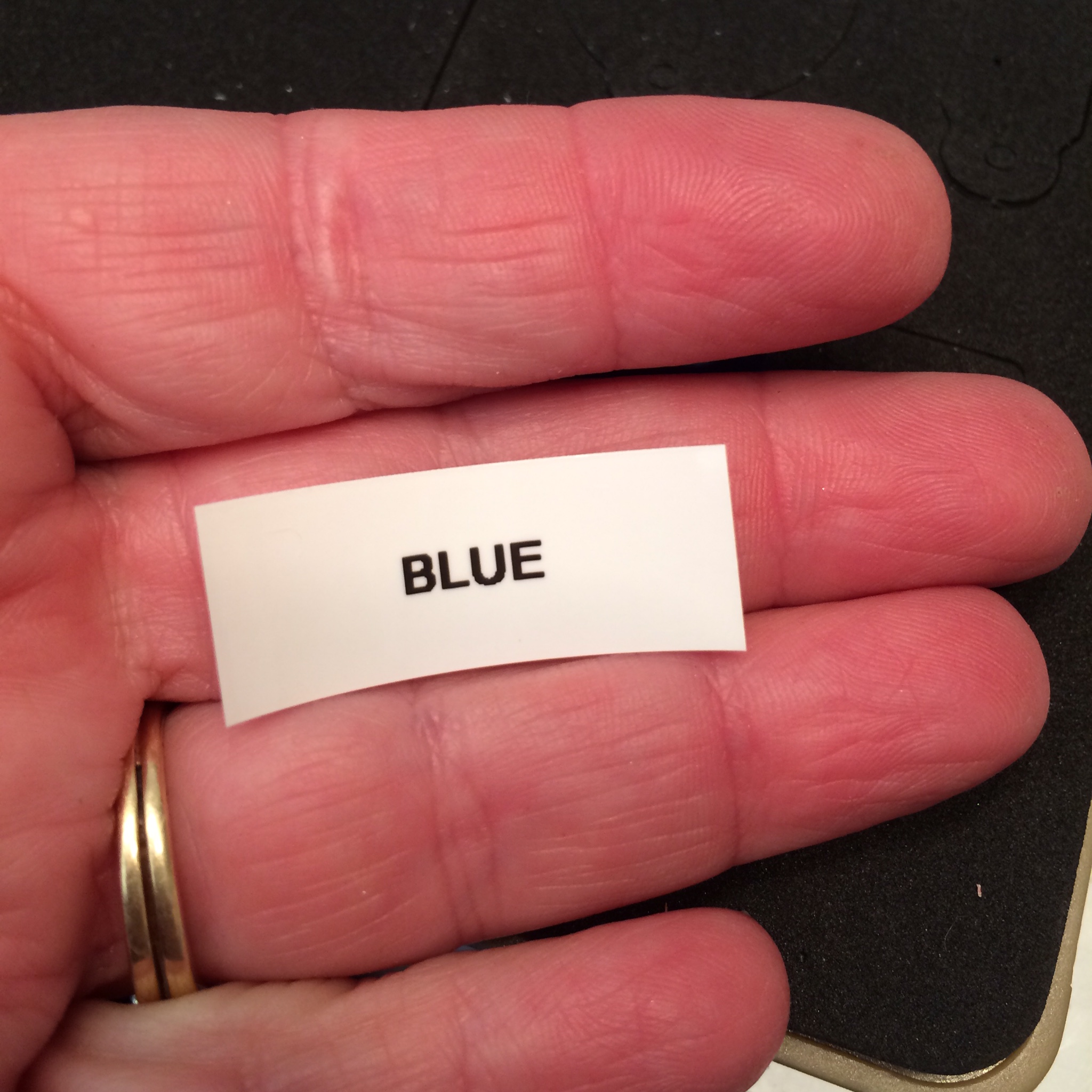 I used my die cutter to make index tags out of the paper scraps using Tim Holtz Alterations index tag die. I then printed out the color’s name using my label maker. It may seem redundant to have an index tag in the color of the scrap and the name, but when I’m filing, I sometimes focus on the name and other times the color. It also makes it seem more organized.