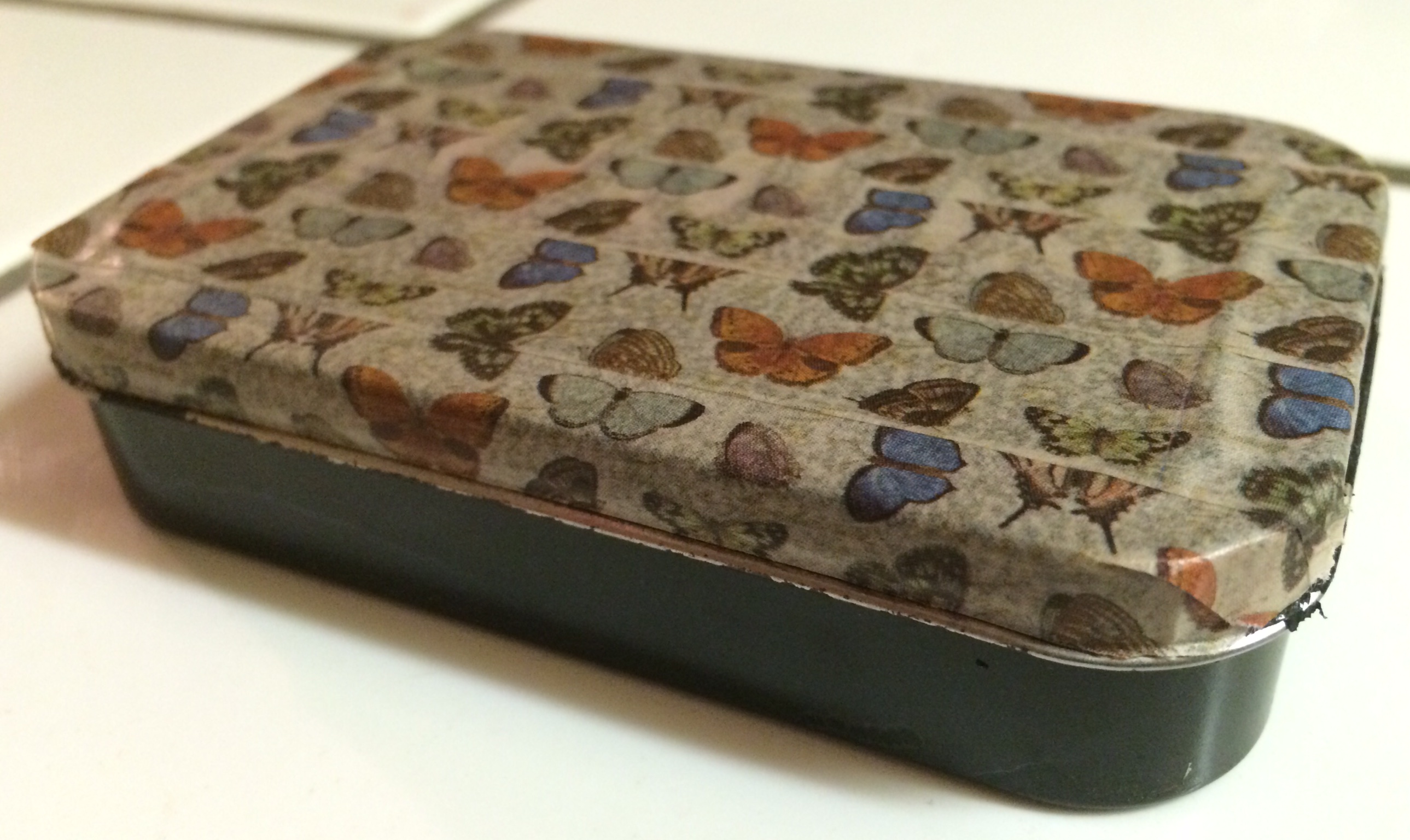 For this tutorial I decided to paint my Altoid tins black mostly because I didn’t have any white flat paint. I grabbed a few rolls of washi tape and taped away.