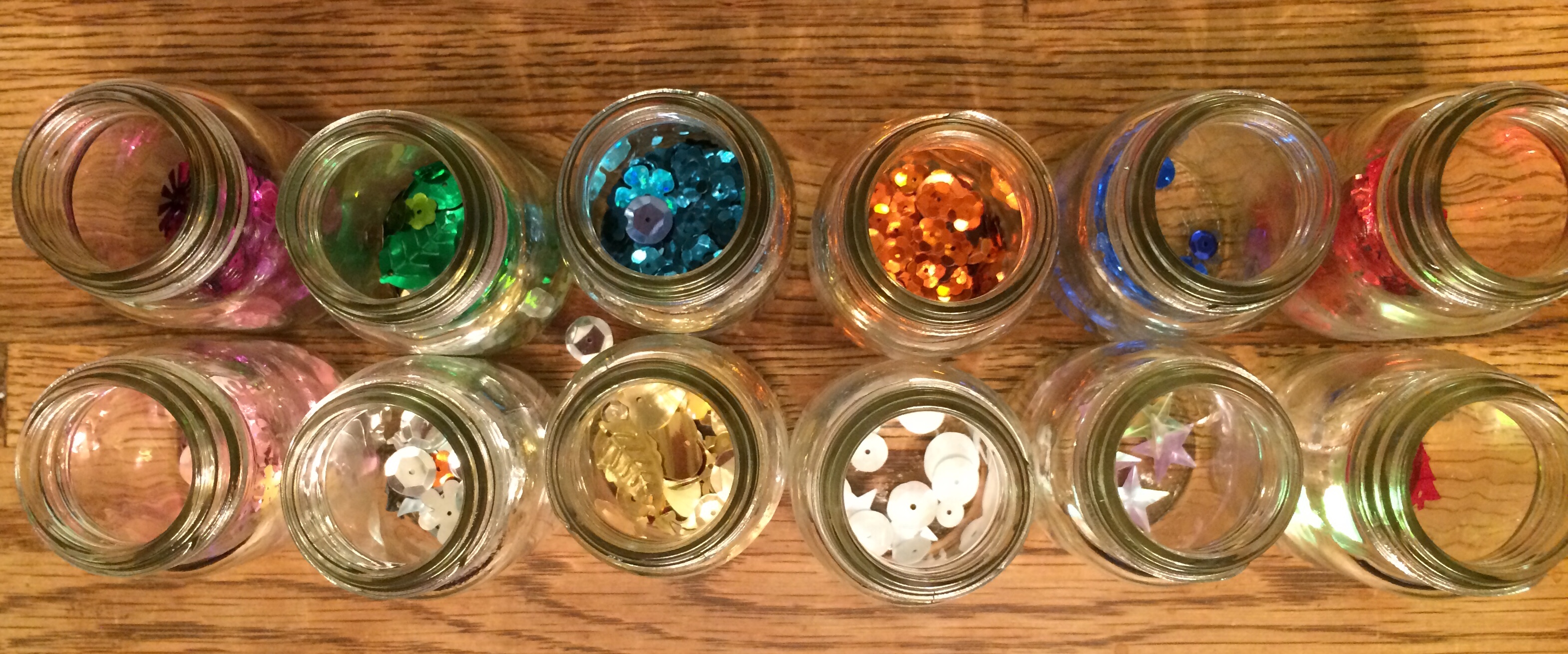 So this is one of those projects that I’m really glad I decided to do, but really wonder when I’ll actually be finished. I learned a valuable lesson about sequins today: When buying sequins, don’t think to yourself, “Hhmmmm…. that little bag looks too small. 200 mixed sequins don’t seem like nearly enough. I should get more.” Trust me 200’s enough. It takes FOREVER to separate tiny sequins into color groups. FOREVER. This will be a “doing while watching television” project.