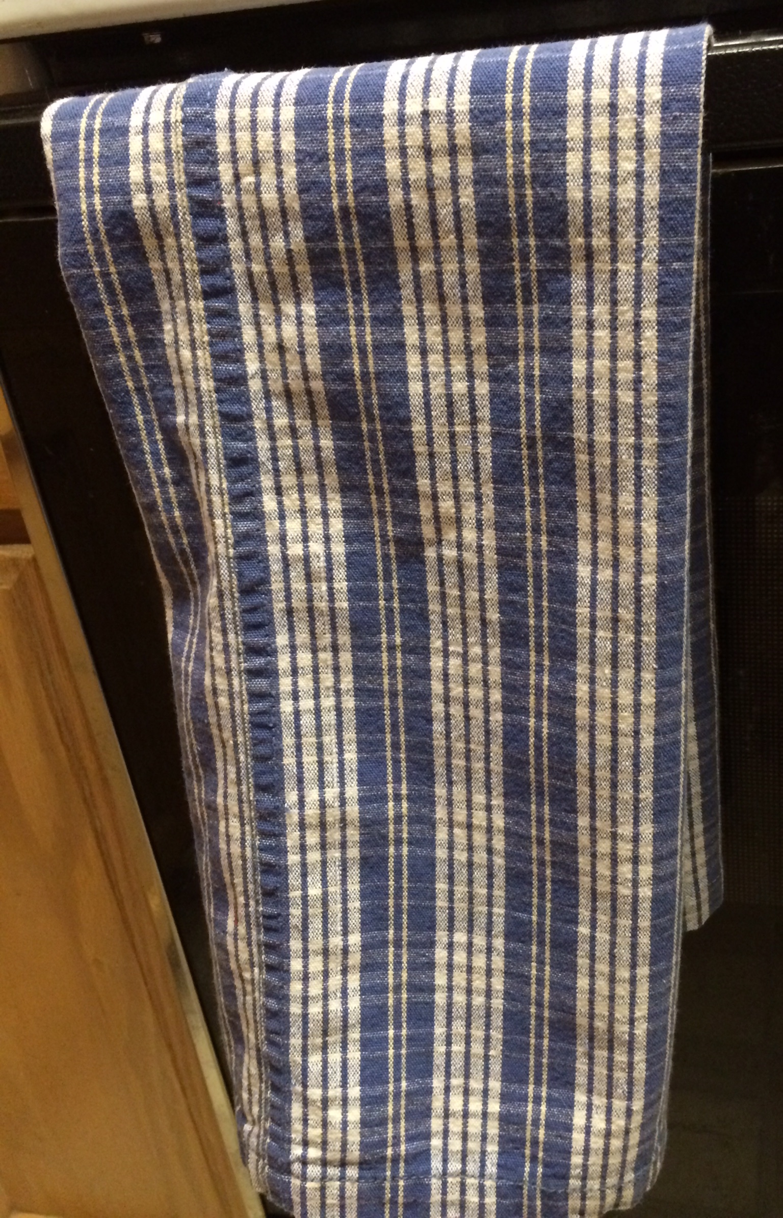 I used an old dishcloth as my pattern and cut out several “new” dishcloths.  The fabric is a nice heavyweight cotton which will do well for kitchen chores.  I hemmed the three remaining sides and was done in no time at all.  The whole project went faster than I thought it would.