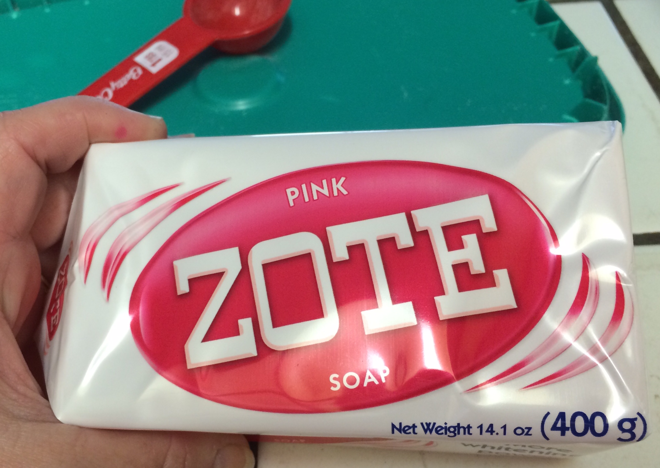 The last time I made this detergent I used Fels Naptha soap and loved it, but was ready for a change. A friend told me about Zote soap which is also a laundry soap. It’s good for delicate clothes and supposedly whitens really well. It’s also pink!