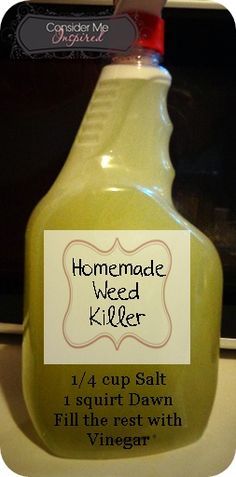 In California we’ve been dealing with a drought, but that doesn’t seem to make a difference to the weeds in my backyard. They still keep growing. My mom told me about the weed killer she uses, a solution made with Dawn liquid dish soap, salt and vinegar. Obviously it takes longer to kill the weeds than if I used Roundup, but I don’t like using poisonous chemicals because of the dogs. I’m willing to take the time.