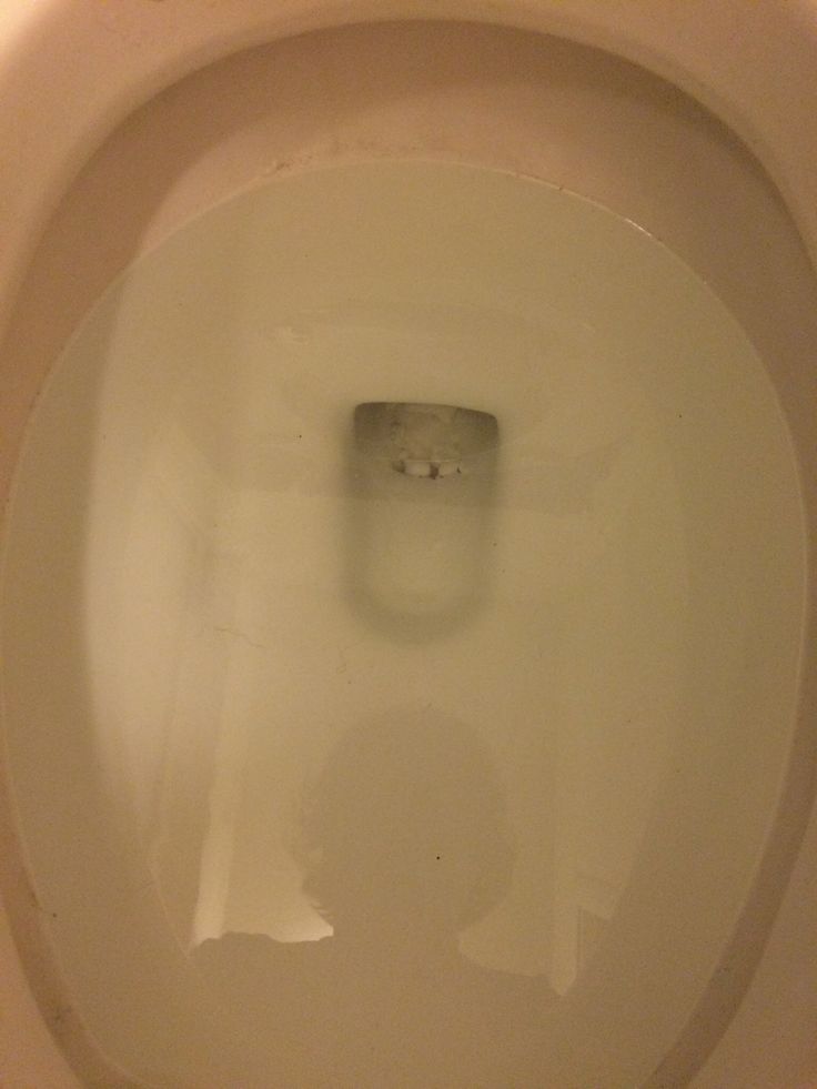 I poured the ingredients for the Toilet Bowl Cleaner directly into the toilet bowl because as you know vinegar and baking soda create a bit of a ‘volcano’ effect and I didn’t want that mess all over my counter. When added directly to the water in the toilet bowl, there’s a bit of a fizziness, but nothing that causes a great reaction. I swished the solution and set my timer for 30 minutes at which time I needed to pee. I think that’s Murphy’s Law. (And, yes, I managed to take a shadow selfie in the toilet bowl! My photography skills leave a lot to be desired. 😉 )