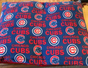 With Baseball Opening Day around the corner (March 29), I knew I wanted to make dog beds for my two dogs using fabric from their respective teams. Ellie is a San Francisco Giants fan and Mindy is a Chicago Cubs fan.Ā  Coincidentally, I am a Cubs fan and Mike, my husband, is a Giants fan. šŸ™‚Ā  We’re a two team family.