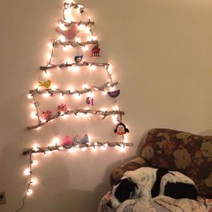 About six years ago I wrote a blog post about our Christmas Wall tree. I love our wall tree now, mostly because of the circumstances that led us to choosing a wall tree. (I’ll give you a guess: it involves dogs) But it was a change to my annual Christmas decorating plans that required flexibility and creativity because we had always had our tradition of picking a tree from the Christmas tree lot. I loved the smell of fresh pine, the cozy feel the tree gave our living room and, of course, getting out all the decorations and spending an afternoon stringing glitter yarn and hanging ornaments. There are so many memories wrapped up in our ornaments and I enjoy the trip down memory lane. We made the leap to the Wall Tree (out of necessity) over 15 years ago and haven’t looked back. There’s no smell of fresh pine, but I’ve found some cool candles that solve that problem ;-). And our living room is still Christmas cozy, but now with more space.